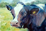 2009koeienkoppen in de stal van de buren verlangend kijkend naar buiten; aquarel in passepartout